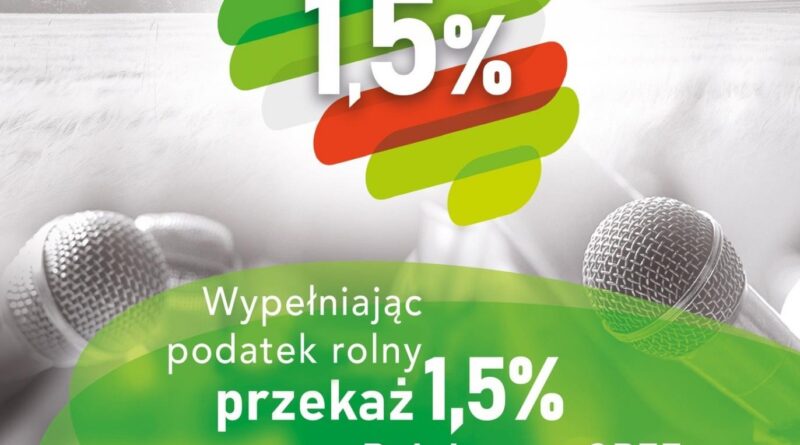 Informujemy, że do dnia 15 listopada 2025 r. podatnicy podatku rolnego będący osobami fizycznymi lub rolniczymi spółdzielniami produkcyjnymi, mogą przekazać 1,5% podatku rolnego na rzecz: