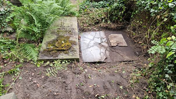 Całość niestety była na tyle zniszczona, że zrodziła się myśl aby grób uratować i odnowić. Powierzchnia płyty z cenną płaskorzeźbą pokryta była licznymi nawarstwieniami. Widocznych było wiele drobnych uszkodzeń i wykruszeń piaskowca.
