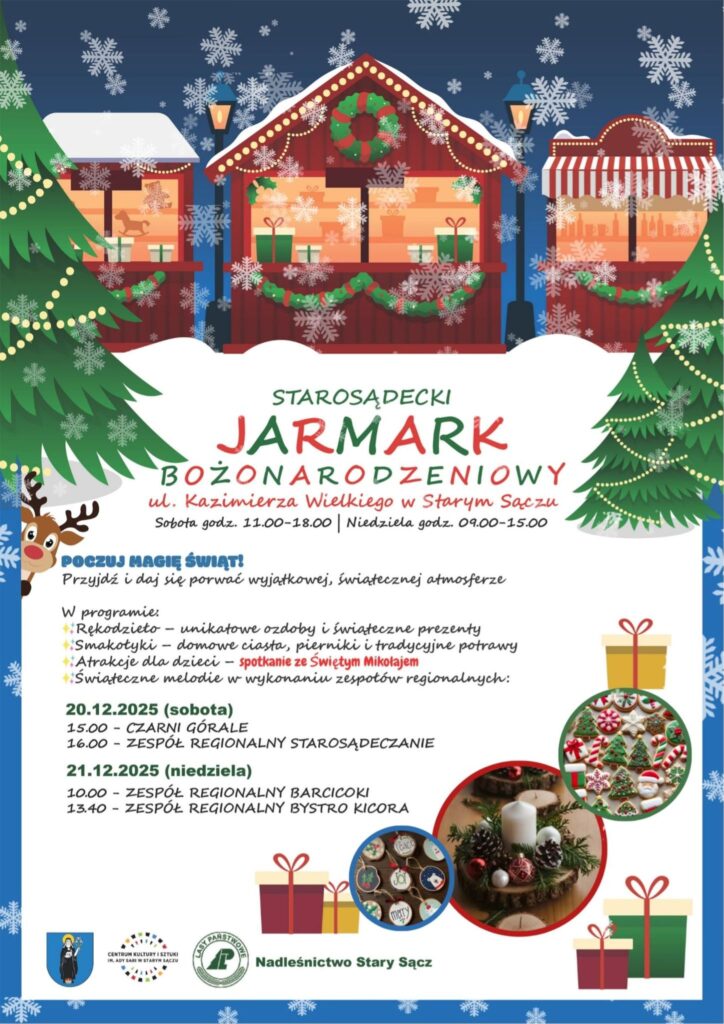 Serdecznie zapraszamy do odwiedzenia Starosądeckiego Jarmarku Bożonarodzeniowego i wspólnego przeżywania przedświątecznych chwil.