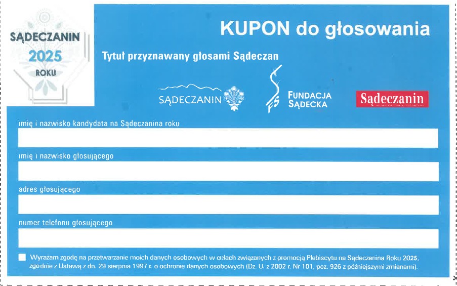 Więcej informacji w regulaminie Plebiscytu „Sądeczanin Roku 2025”.
