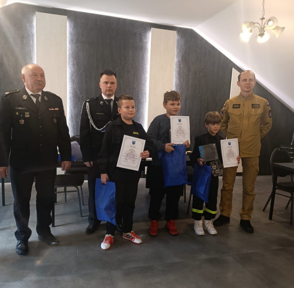 Uczestnicy ze szkół podstawowych sprawdzali swoją wiedzę w trudnym teście pożarniczym, a najlepsi awansowali do eliminacji powiatowych – Jan Majewski i Natalia Banach.