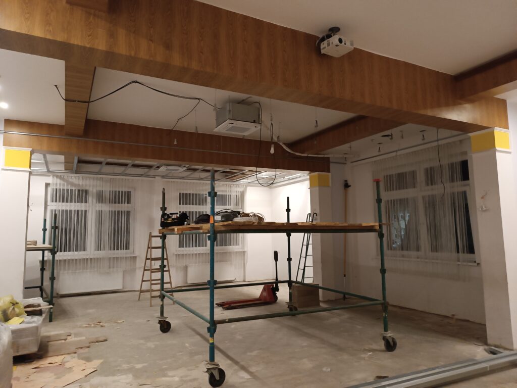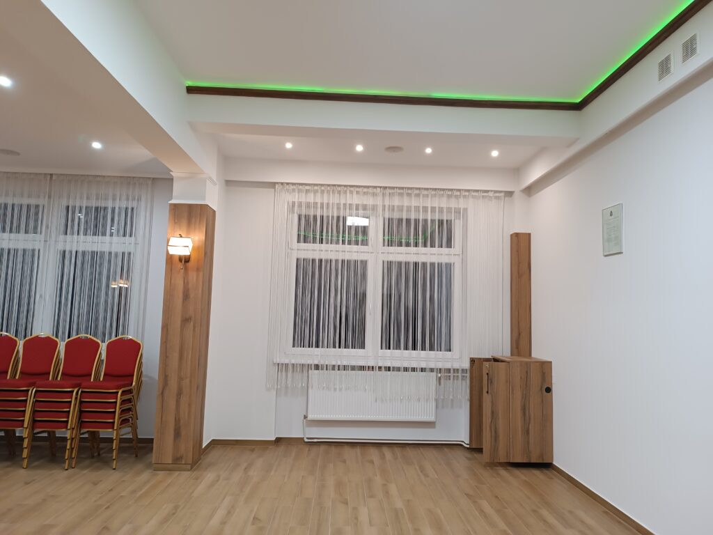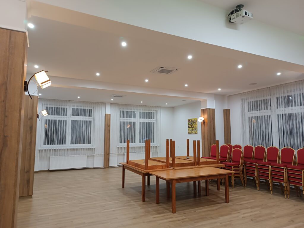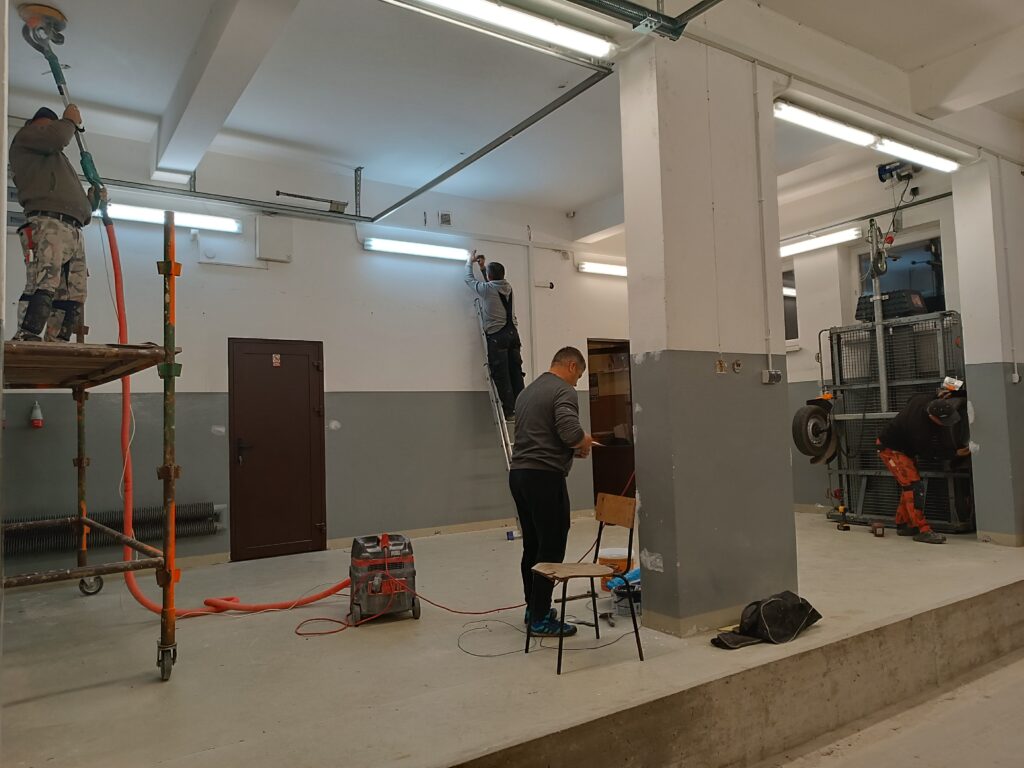 - wymianę parkietu na sali wraz z jej kompleksowym odnowieniem, obejmującym wymianę narożników zewnętrznych, zabudowy grzejników oraz malowanie,